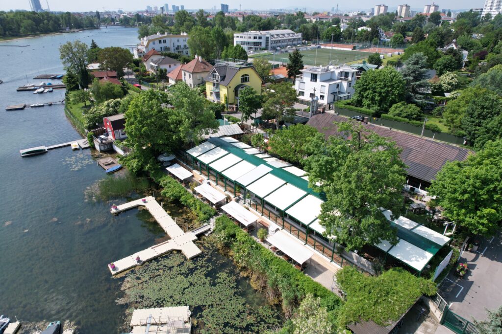Der Schanigarten des Al Banco wurde an die speziellen Wünsche unseres Kunden angepasst. Neben hoher Funktionalität der einzelnen Elemente wurde auch auf die Nachhaltigkeit und Langlebigkeit geachtet. Ein besonderer Fokus lag darauf, dass sich unsere Produkte in das Designkonzept des restlichen Etablissements einfügen sollten. Sie sind jedoch nicht unsichtbar, sondern – im Gegenteil – ein echtes Highlight, da sie modern und stylisch sind, den Außenbereich optisch aufwerten und für perfekte Lichtverhältnisse sorgen.
